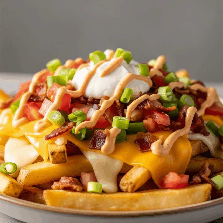 - Drizzle generously: Pour the mixed sauces over the stacked fries, letting it cascade deliciously through the layers.