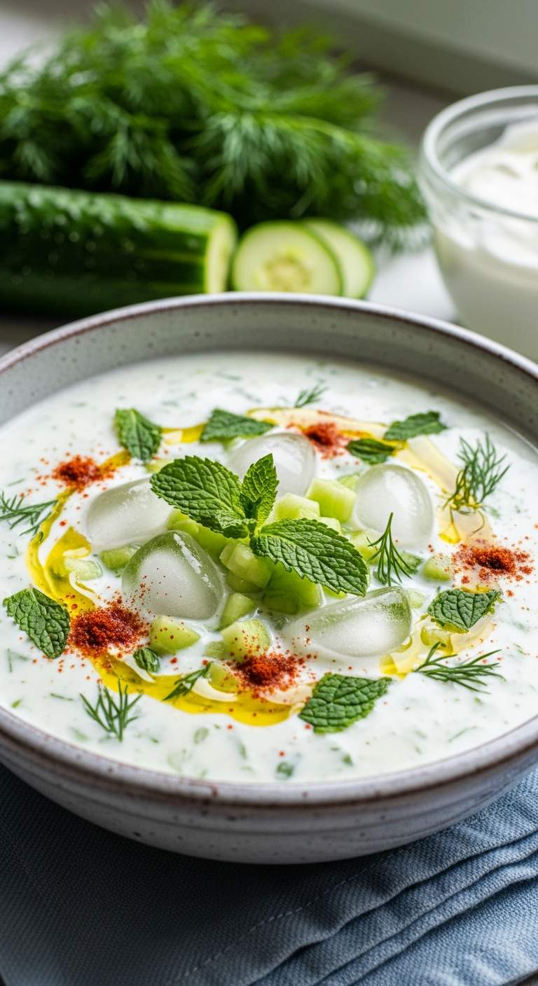 - Final touches before serving: Just before plating, give the soup a gentle stir. Drizzle a little extra olive oil on top and garnish with a sprig of dill or thin cucumber ribbons for an elegant, vibrant finish.